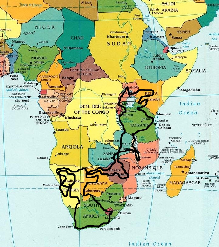 Unser Fahrzeug wurde im Container von Hamburg nach Namibia verschifft. Die Reise begann im Februar 2019 in Windhoek/Namibia. Von dort ging es innerhalb von 10 Monaten kreuz und quer durch die folgenden 11 Länder:
